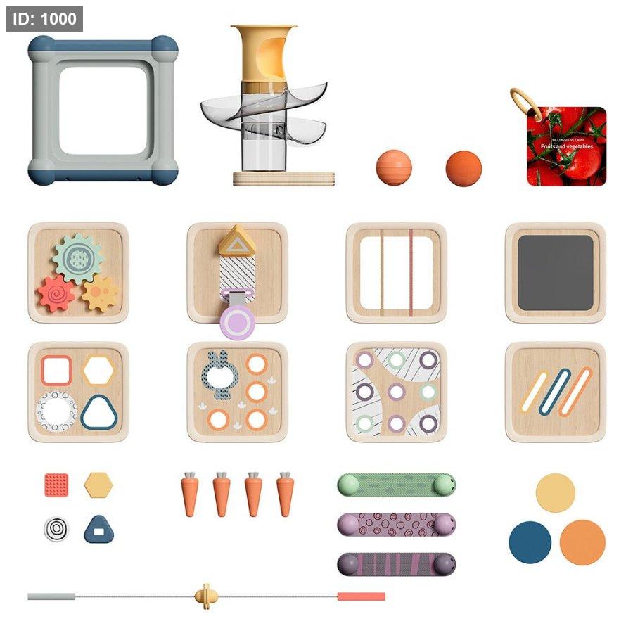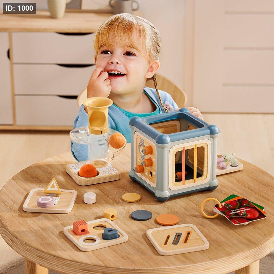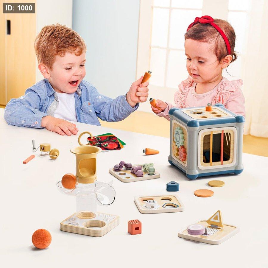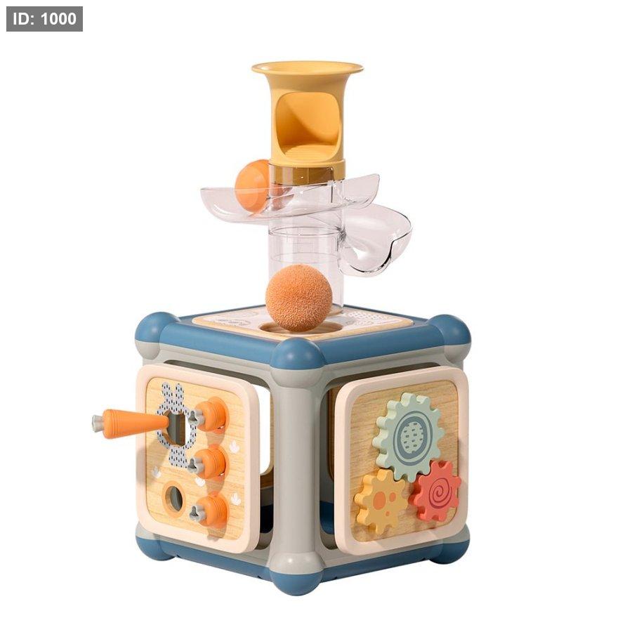 يحتوي المكعب على 10 أنشطة مختلفة مثل إدخال الأشكال، تمرير الخرز، إدخال العملات، تدوير العجلات، لعبة الخيط، إدخال الجزر، تمرير الكرات والمزيد. كما يمكن تبديل جوانب المكعب بسهولة لتوفير تحديات جديدة تناسب مراحل نمو الطفل المختلفة.