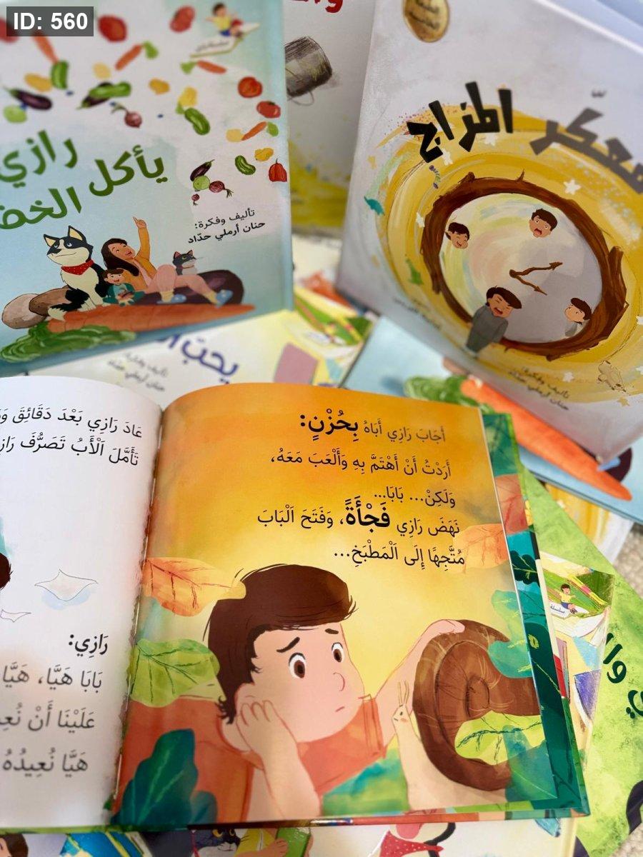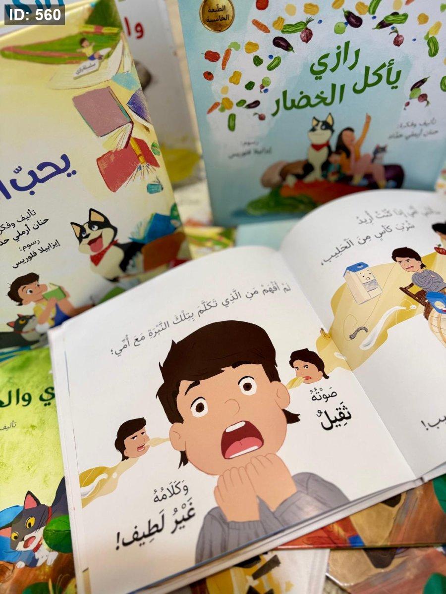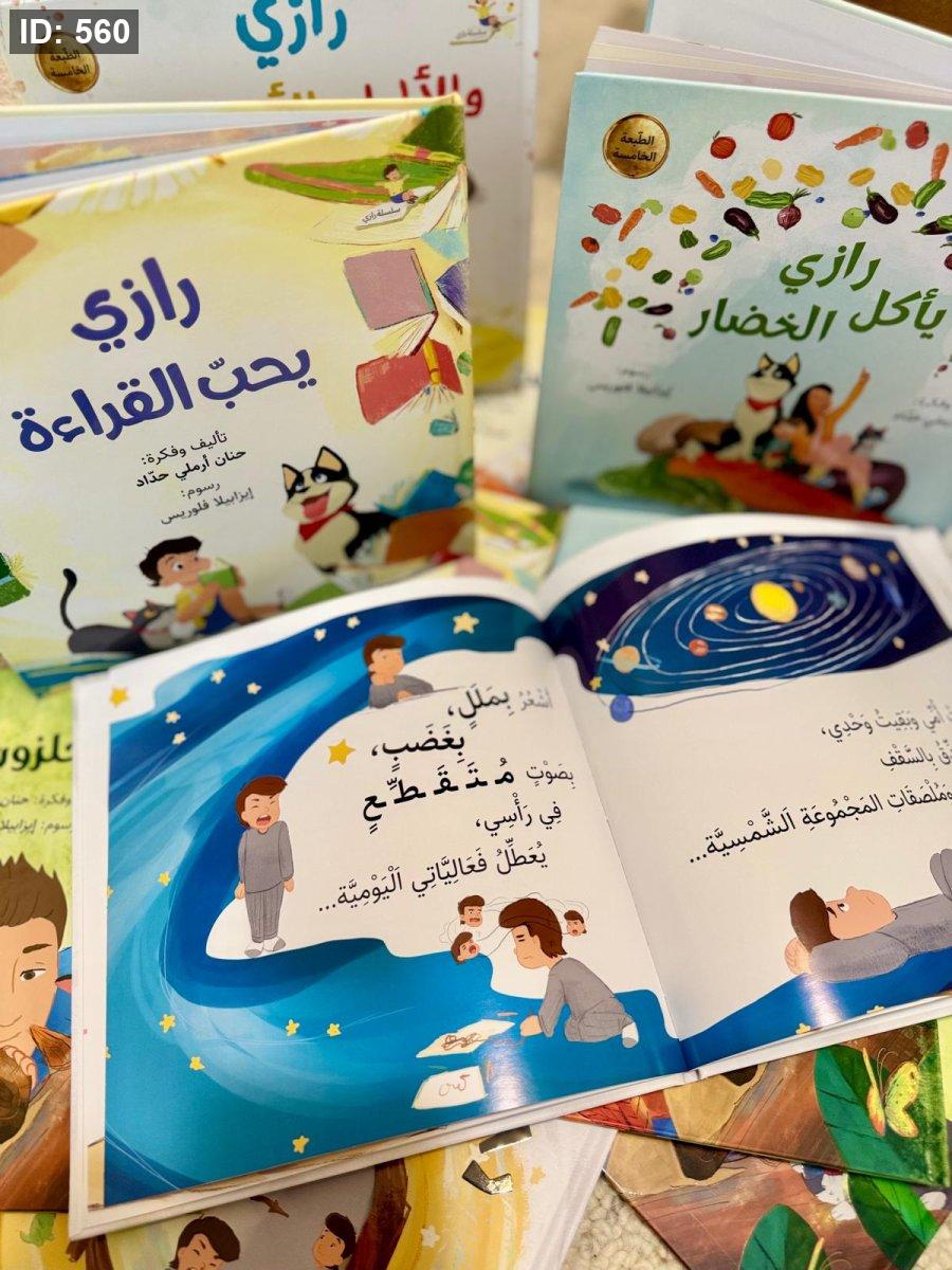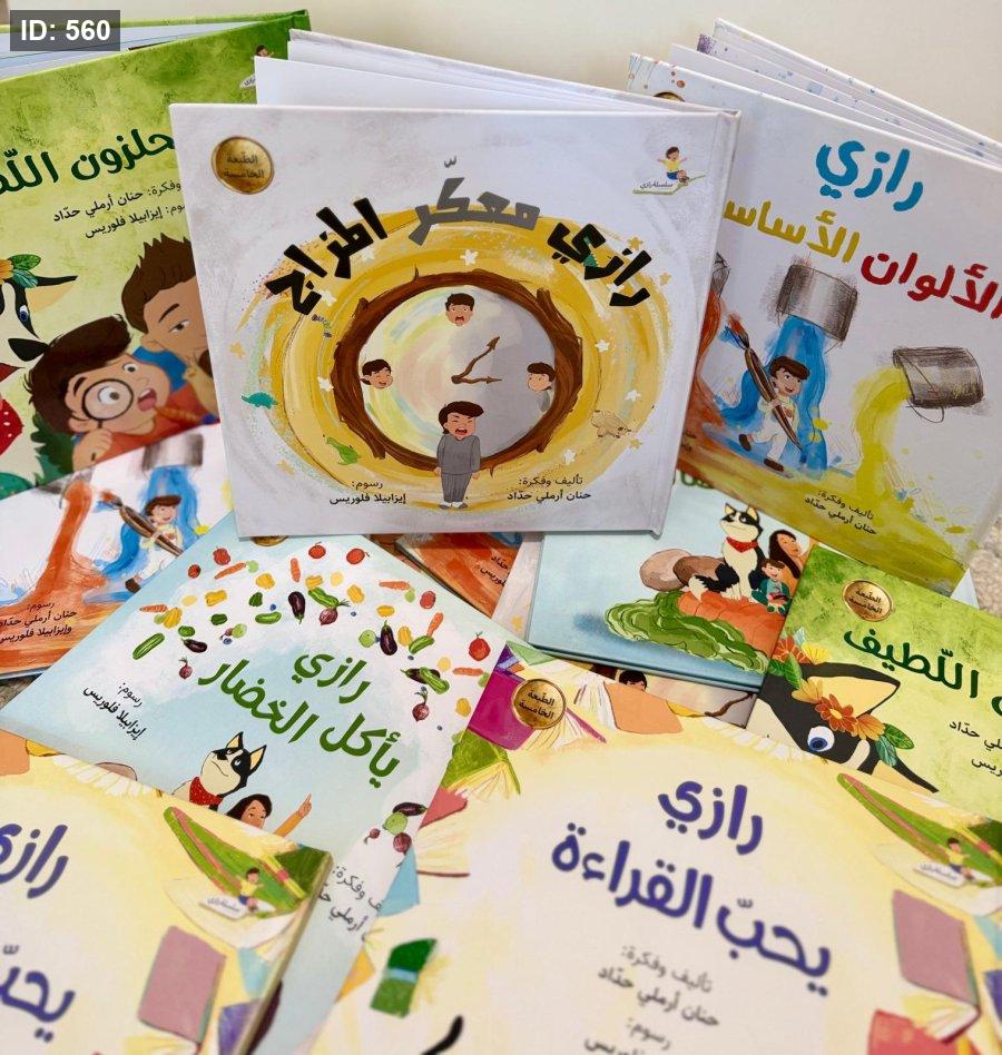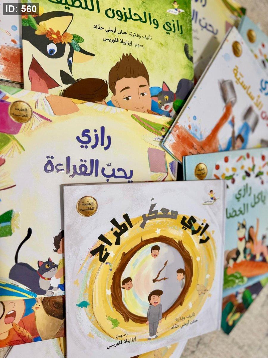 5 قصص: رازي معكّر المزاج، رازي والحلزون اللّطيف، رازي يأكل الخضار، رازي والألوان الأساسيّة، رازي يحبّ القراءة. مواضيعها عن التّحدّيات اليوميّة للأطفال من الحياة اليوميّة كالطّعام، المزاج المتقلّب، احترام الاخر، الحدود، المشاركة وغيرها الكثير.