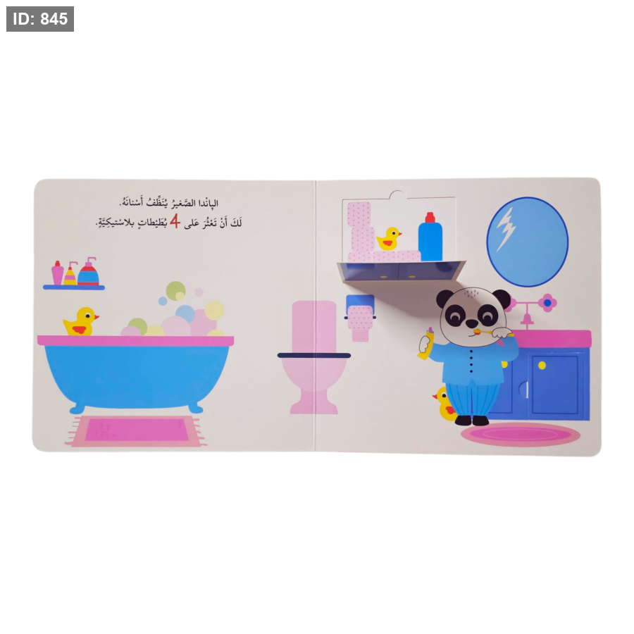 هذا الكتاب الصغِيرُ بِالكَرْتون المُقَوَى وَالْمُزَوَّدُ بِالطَّيَاتِ يَسْمَحُ لِلأَطْفَالِ الصَّغَارِ بِتَعلَّمَ العَدِّ مِنْ 1 إلى 6.