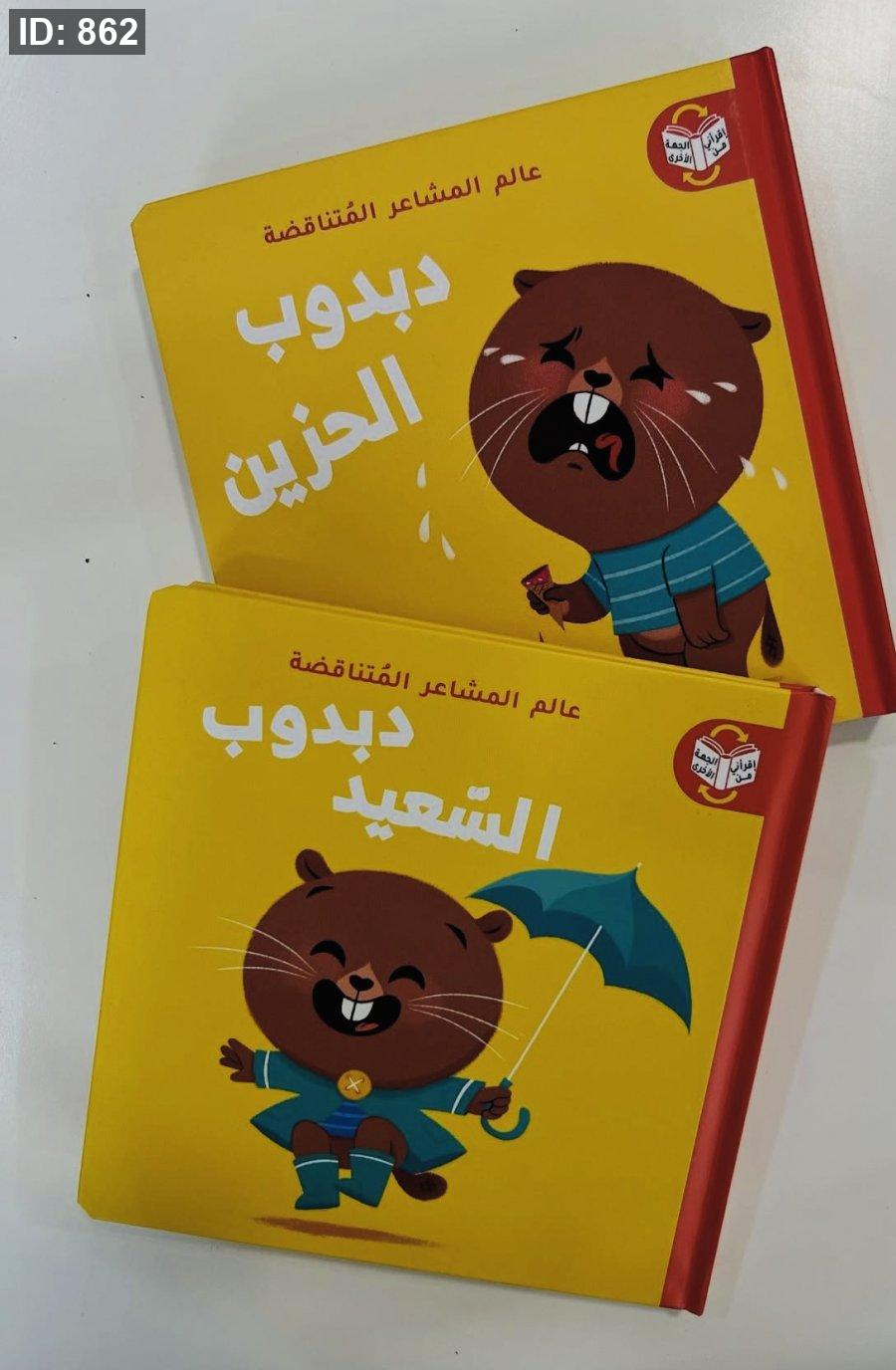 تساعد الطفل في فهم مشاعرهم كل كتاب يحتوي ع شعورين متناقضين فالكتاب يقرأ في كلا الاتجاهين