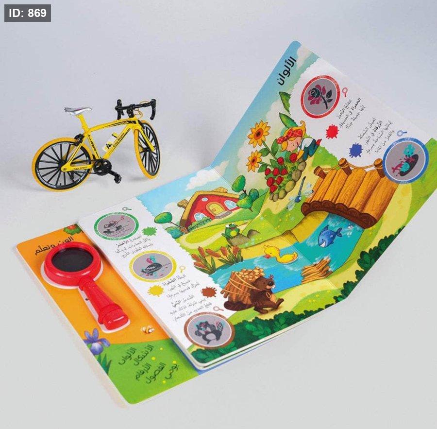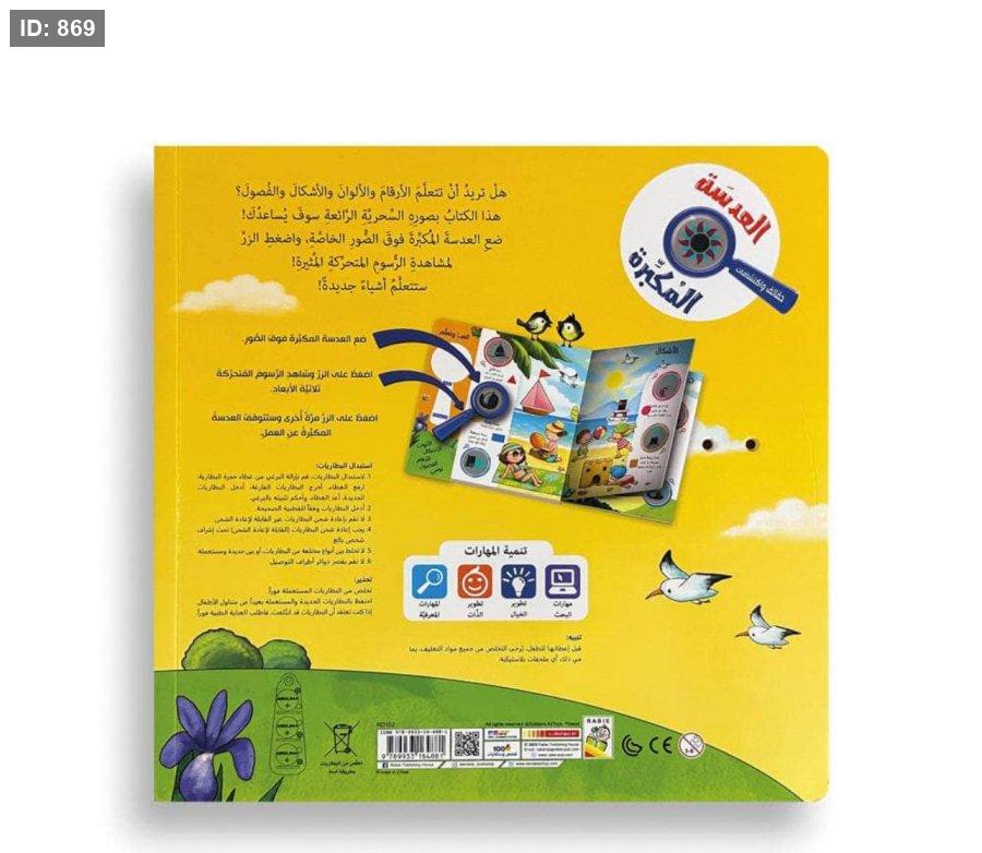 هلْ تريدُ أنْ تتعلَّمَ الأرقامَ والألوانَ والأشكالَ والفُصولَ؟ هذا الكتابُ بصورِهِ السِّحريَّةِ الرَّائعةِ سوفَ يُساعدُكَ! ضعِ العدسةَ المُكبِّرةَ فوقَ الصُّورِ الخاصَّةِ، واضغطِ الزرَّ لمشاهدةِ الرُّسومِ المتحرِّكةِ المُثيرةِ!
