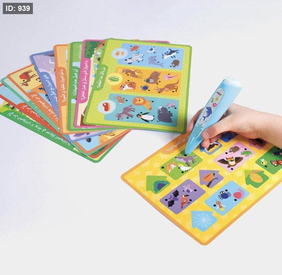 القلمُ الذَّكيُّ يجعلُ عمليَّةَ التَّعلُّمِ مُمتعةً! اخترْ بطاقةً وابحثْ عنْ إجابةِ السُّؤالِ في الصُّورةِ. اضغطِ العلاماتِ الخاصَّةَ بالقلمِ الذَّكيِّ على البطاقةِ، وسوفَ يُشيرُ إذا كانتِ الإجابةُ صحيحةً أمْ خاطئةً!